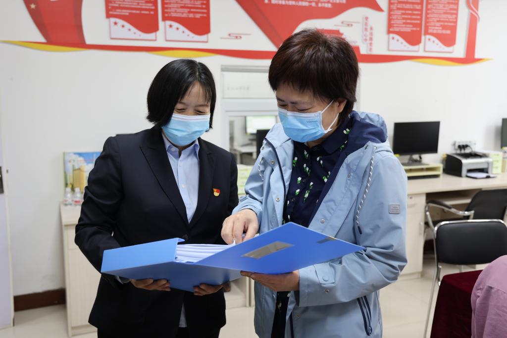 在三附院“全国党建工作样板支部”培育创建单位——推拿科一病区党支部,李小芳一行查看了支部党员活动室、党建文化墙及样板党支部创建资料。