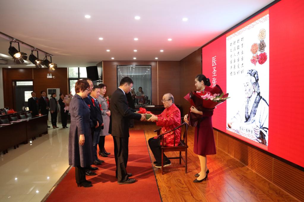 毛德西教授带领所有弟子向医圣张仲景像行三鞠躬礼,徒弟分2组分别向老师行三鞠躬礼,并接收老师颁授的“拜师授徒证书”。弟子宣读拜师帖,新收徒弟代表二附院副院长胡仕祥发言。拜师仪式上,毛德西教授将其长期总结出的书写医学论文的方法悉数传授给学生,希望每一位学中医的学生都记在心中并付诸实践。