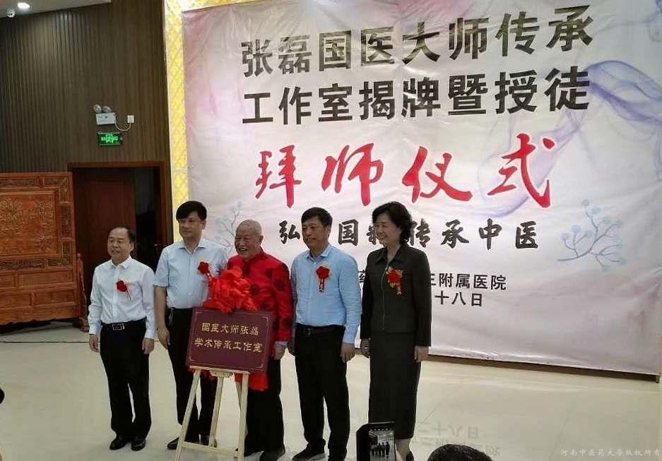 秋高气爽肺气清,中医盛世看尔今;拜师仪式隆重举,薪火相传杏林人。2018年9月28日下午,张磊国医大师传承工作室揭牌暨授徒拜师仪式在我校三附院学术交流中心举行。“国医大师”张磊教授、河南省中医管理局副局长张建锋、校长许二平、党委副书记张丽霞和三附院党政领导班子成员、医护人员及张磊教授好友、学校老专家、老教授等参加仪式。仪式由三附院副院长高翔主持。