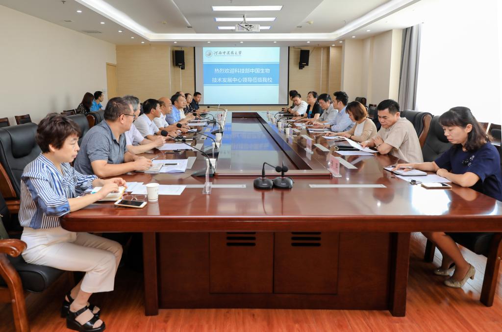 2018年9月11日上午,科技部中国生物技术发展中心副主任沈建忠、中心公共卫生处副调研员尹军祥,省科技厅社会发展科技处张芳、王婷一行到我校调研指导。副校长徐江雁、冯卫生,部分重大科技项目负责人、申报人李素云、李学林、刘志斌、陈欣菊、马素平等,科学技术处、科研实验中心、计划财务处、基础医学院、药学院、第一临床医学院等部门负责人和相关人员参加了调研座谈。
