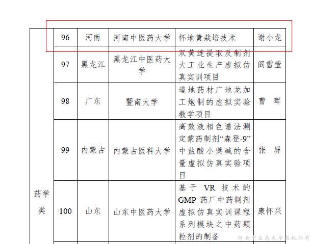 日前,教育部公布了首批国家虚拟仿真实验教学项目认定结果,我校谢小龙副教授负责的“怀地黄栽培技术”项目榜上有名,这是我校在国家级教学工程项目上的又一个突破,该项目也是河南省唯一一项国家级虚拟仿真实验教学项目。