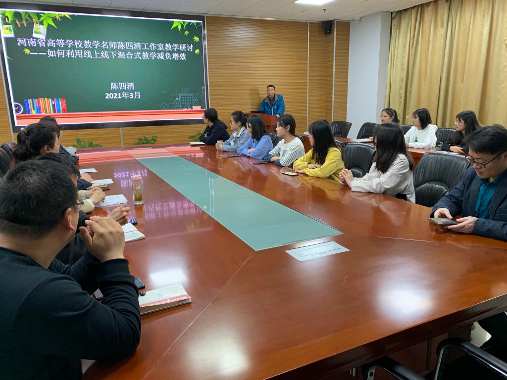 本网讯(文/陈四清 图/郭艳桦)2021年3月30日下午,河南省高等学校教学名师陈四清工作室教学研讨活动在基础医学院会议室成功举行。本次研讨以“如何利用混合式教学减负增效”为主题,由名师工作室负责人、解剖实验室主任、河南省高等学校教学名师陈四清教授主持,基础医学院副院长曹珊,人体解剖与组织胚胎学教研室、中西医结合基础教研室、病原免疫生物学教研中心等教师代表和部分临床医学专业学生参加了本次研讨活动。
