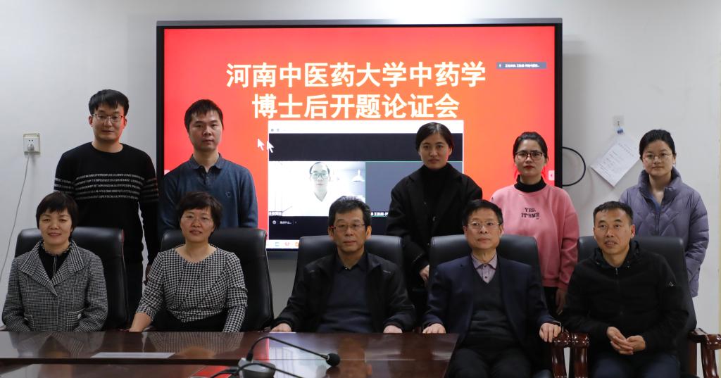 本网讯(文图/王胜超)2022年3月1日下午,中药学博士后科研流动站开题论证会在综合楼BM636学术报告厅顺利举行。校人事处副处长卢旻、药学院院长陈随清、副院长纪宝玉及博士后合作导师参加了会议。论证会专家组由河南省中医药研究院王军研究员,河南大学李钦教授,我校冯素香教授、方晓艳教授、郭涛教授组成。王军研究员任专家组组长并主持开题论证会。