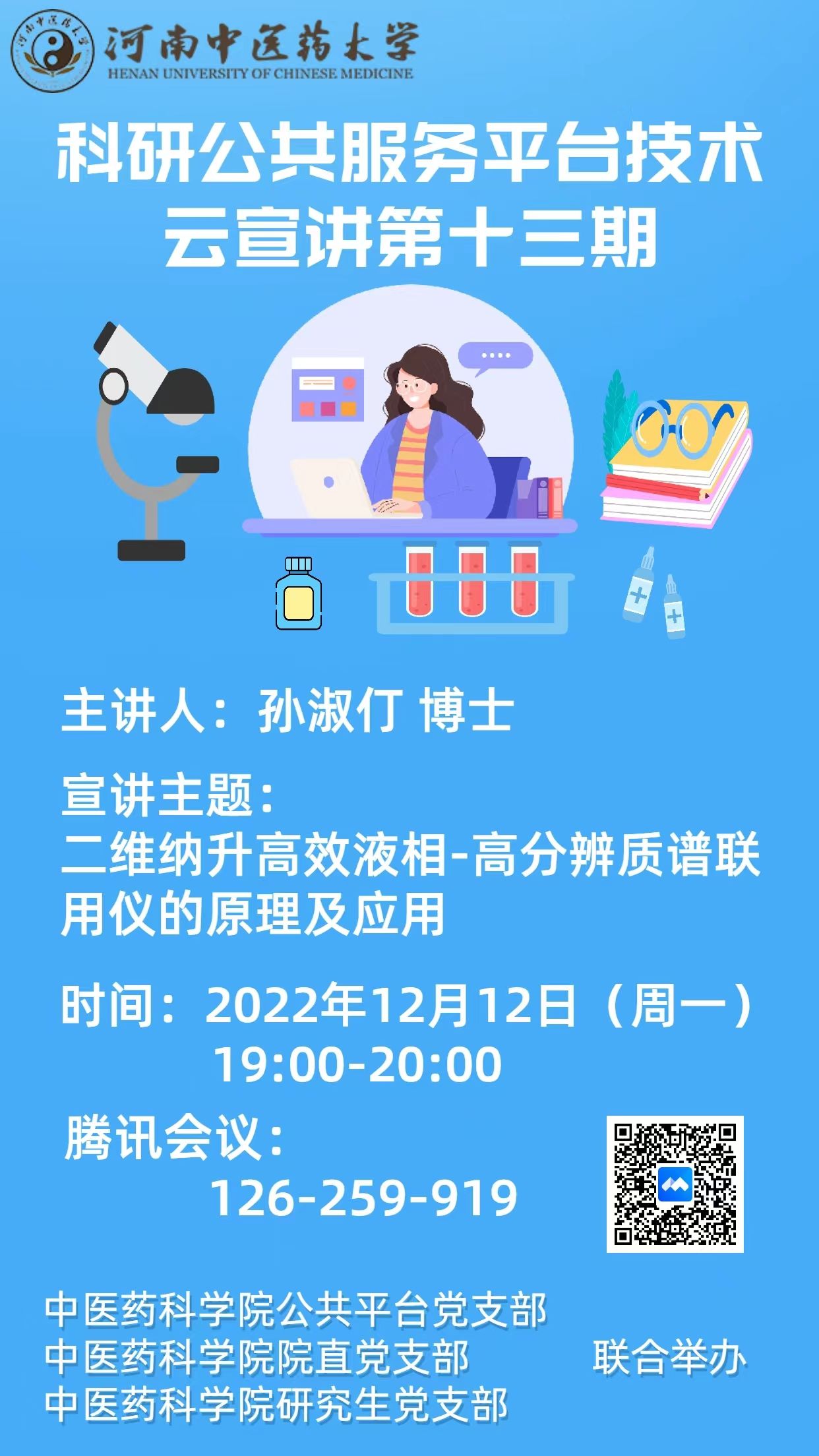 由学校中医药科学院举办的科研公共服务平台技术云宣讲系列讲座将以腾讯会议形式线上开展。