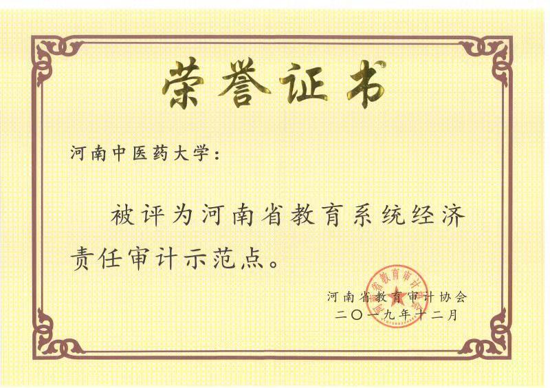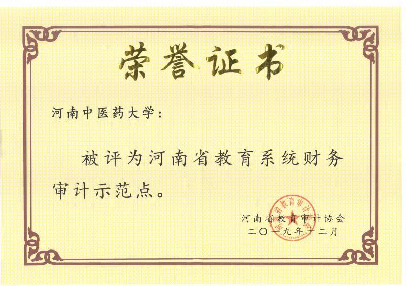 本网讯(图文/孙睿敏)为进一步推动我省教育系统内部审计事业科学发展,提升审计服务学校中心工作能力,2019年12月20日,河南省教育审计协会在全体会员单位中开展评选审计项目先进典型活动,我校上报的经济责任审计项目和年度财务收支审计项目分别摘得河南省教育系统“经济责任审计示范点”和“财务审计示范点”荣誉称号。