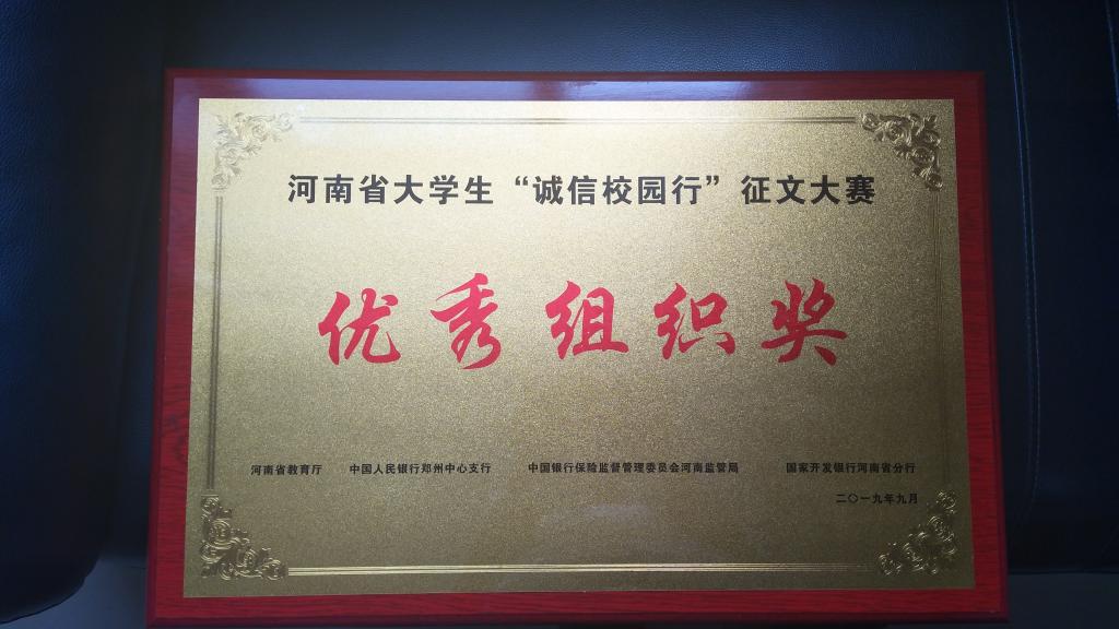 为积极参加本次大赛,我校在全校范围内组织开展了华润三九医药杯“我和我的祖国”励志成才征文大赛,学生们积极参加,共收到投稿213篇。通过各学院初选推荐、专家评审,最终推荐6篇作品参加全省比赛。河南省大学生“诚信校园行”系列活动已连续开展了12年,活动以“诚信”为主题,突出资助育人和社会主义核心价值观教育,被教育部纳入《高校思想政治工作质量提升工程实施纲要》,是构建“十大”育人体系的重要措施,已成为河南高校资助宣传和资助育人的靓丽名片。