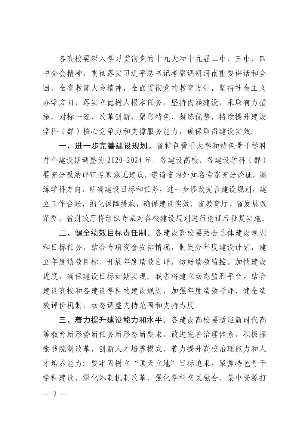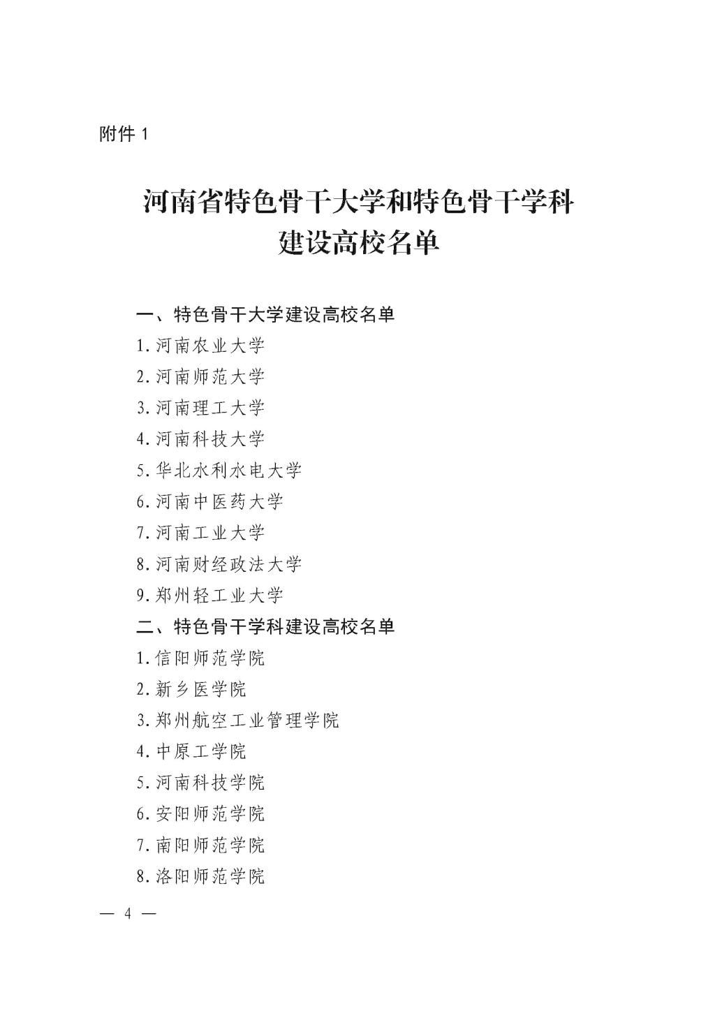 关于公布河南省特色骨干大学和特色骨干学科建设名单的通知