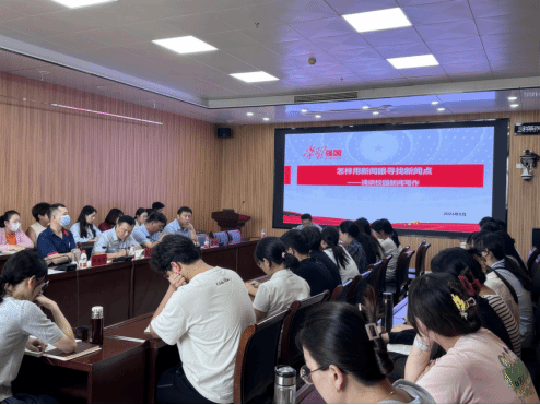 本次培训会特邀“学习强国”河南学习平台资深编辑、城市运营部主管陈向阳做专题讲座。他以《怎样运用新闻眼寻找新闻点》为主题,从“什么是新闻”“新闻的概念”“新闻点来源”“如何撰写新闻”“多渠道传播”等五方面,以工作中的丰富案例和实例为出发点进行讲授,讲解内容生动形象,具有很强的针对性和实用性,获得了阵阵掌声。