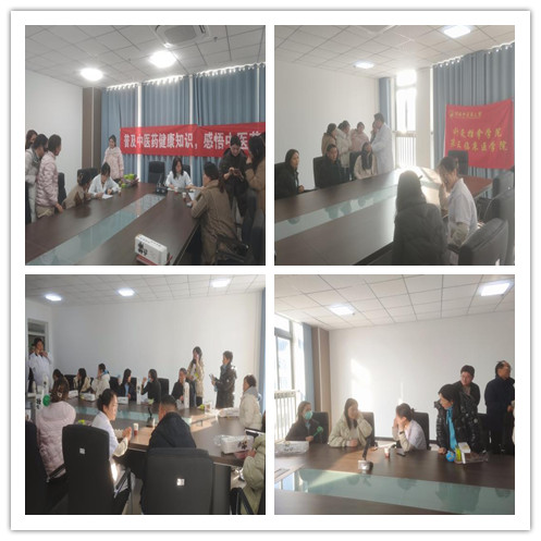 我校临床专家及研究生在学校会议室开展中医药文化进校园活动,为师生们提供义诊服务,进行健康知识科普宣教,并赠送中医养生保健用品、经络按摩用具、中医药特色台历等文创产品。