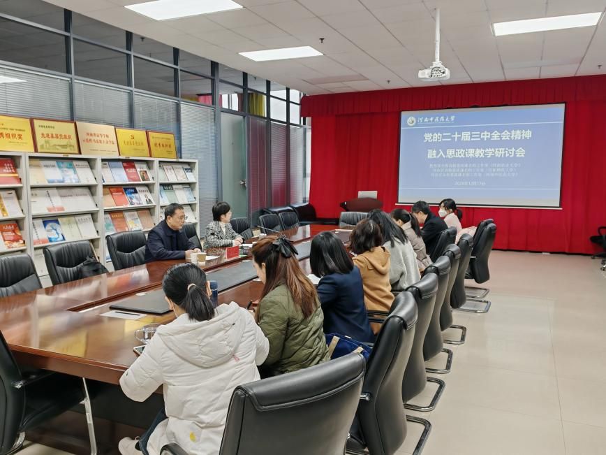 唐国战就如何将党的二十届三中全会精神系统地融入“习近平新时代中国特色社会主义思想概论”“毛泽东思想和中国特色社会主义理论体系概论”“马克思主义基本原理”“思想道德与法治”等课程中的原则、策略与注意事项进行了细致的讲解。唐国战强调,要通过集体备课与教学研讨,明确融入路径和方法,把道理讲深讲透讲活,推动党的二十届三中全会精神进课堂、进教材、进头脑。