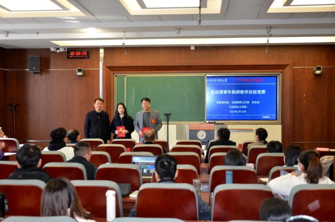 本网讯(文/喻淑文 图/王彦明)思政课是高校落实立德树人根本任务的关键课程,为进一步加强学校思政课教师队伍建设、全面提升思政课教师教学技能水平,2025年2月16日,马克思主义学院在教学实验大楼A633教室举办思政课青年教师教学技能竞赛。校党委委员、党委宣传部部长张顺超,党委教师工作部、人事人才工作部副部长李凯,教务部副部长、教学质量评价与教育教学研究中心副主任闫秀娟,多位校外专家评委及马克思主义学院全体教师参加本次活动,10位博士青年教师参与竞赛。
