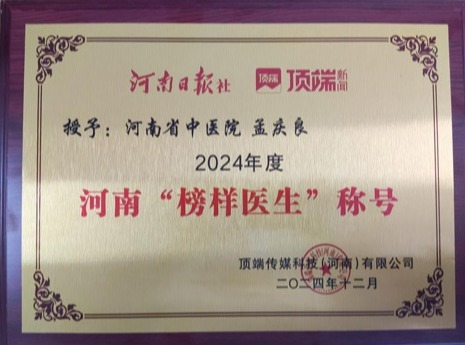 孟庆良主任荣获2024年度河南“榜样医生”称号,不仅是对他个人努力和奉献的肯定,更是对河南省中医院风湿病诊疗中心团队工作的认可。在未来的工作中,孟庆良主任将继续带领团队,不忘初心、牢记使命,在风湿病诊疗、科研创新、人才培养及社会服务等方面深耕细作,助推风湿病学科的蓬勃发展。