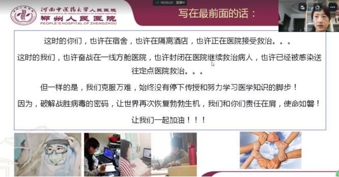 学习精神融课堂,以课程思政提升育人实效。临床教师立足课堂主阵地,将学习党的二十大精神融入课堂教学,将疫情危机转化为思政育人契机,涌现出一批典型的课程思政案例。比如学院血液与肿瘤疾病课程负责人、河南省优秀教师张晓娟在讲授《淋巴瘤》时所讲:“这时的你们,也许在宿舍,也许在隔离酒店,也许正在医院接受救治……这时的我们,也许奋战在一线方舱医院,也许封闭在医院继续救治病人,也许已经被感染送往定点医院救治……但一样的是,我们克服万难,始终没有停下传授和努力学习医学知识的脚步!因为,破解战胜病毒的密码,让世界再次恢复勃勃生机,我们和你们责任在肩,使命如磐!让我们一起加油!”