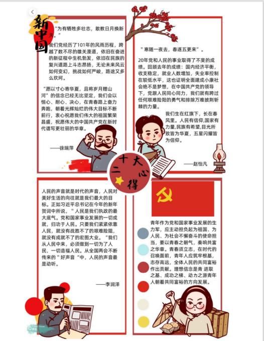 原原本本学报告,逐字逐句悟原理。院领导深学笃行,通过个人自学、中心组学习研讨等方式先学一步、学深一层,统筹做好疫情防控和教育教学。辅导员领学带悟,采取音视频精读选播的形式线上领学、随堂测试,以点带面,形成引领示范效应,检验学习成果。大学生全员发动,自10月25日开始,诵读原文,以寝室为单位录制学习视频,每天在学院“三知书苑”公众号推送精品作品,书写感悟,提炼学习心得,撰写研读笔记,把个人成长坐标与国家发展轨迹统一起来。