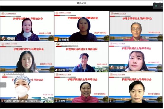 本网讯(文图/ 井晓磊)为进一步提升护理学院研究生导师教学水平和育人能力,提升研究生培养质量,2022年12月3日,护理学院组织硕士研究生导师收看学习了由江苏省高等教育学会主办的“首届江苏省护理研究生导师培训会”。护理学院院长曹珊、副院长秦元梅以及全体研究生导师36人参加了本次培训,培训由学院副院长刘玲霞主持。