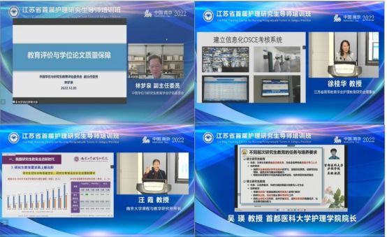 本次培训内容安排充实,业界大咖云集。教育评估专家林梦泉教授、江苏省高等教育学会护理教育研究会理事长徐桂华教授、南京大学教育研究院汪霞教授、复旦大学护理学院院长胡雁教授、首都医科大学吴瑛教授等八位专家,先后以“教育评价与学位论文质量保障”“学科引领、需求导向、多元协同护理硕士研究生培养的探索与实践”“新时代我国研究生教育高质量发展的六个关键问题”“临床护理实践中循证思维的培养”“研究生类型与学位论文要求”等为主题分别进行了专题讲座。讲座后,护理学院导师们纷纷表示,通过一天学习,对我国研究生学位论文质量、护理研究生教育发展情况、护理硕士研究生培养及管理、临床护理循证思维、研究生教育中的导学关系、研究生临床能力培养等方面有了更深入的了解,培训得到导师们的一致好评。