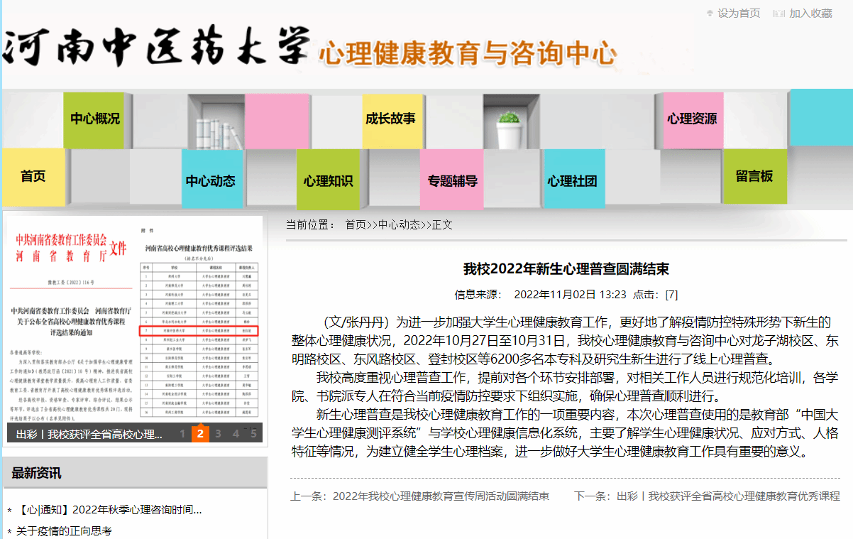 “润心”育人,宣传教育显成效。为有效化解同学们因疫情反复、线上教学、封控管理等带来的不良情绪,我校以心理健康教育宣传周为契机,陆续开展了“青春留影,影映心声”心理微电影比赛、“巧手出萌宠,趣意畅我心”校园手工萌宠比赛、“影如心像,微色追行”云观影等参与体验性活动。此外,通过“朋辈说”“心树洞”“心心语”等固定栏目,推出了多篇心理调适的相关推文。各学院、书院心理辅导站也结合当前形式,开展了心理素质拓展、写给祖国的三行情书、心理书签设计、心理漫画征集、心理手抄报和手工制作等形式多样的宣传教育活动,为同学们的封校生活增添了色彩,有效缓解了同学们在疫情防控期间的心理压力。