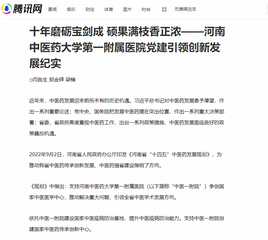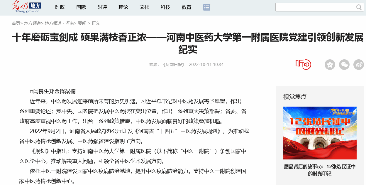 编者按:近日,学习强国、光明网、大河网、顶端新闻、今日头条等10余家媒体以“十年磨砺宝剑成 硕果满枝香正浓——米兰体育网页版登录入口,米兰(中国)第一附属医院党建引领创新发展纪实”为题,对一附院十年发展进行报道。