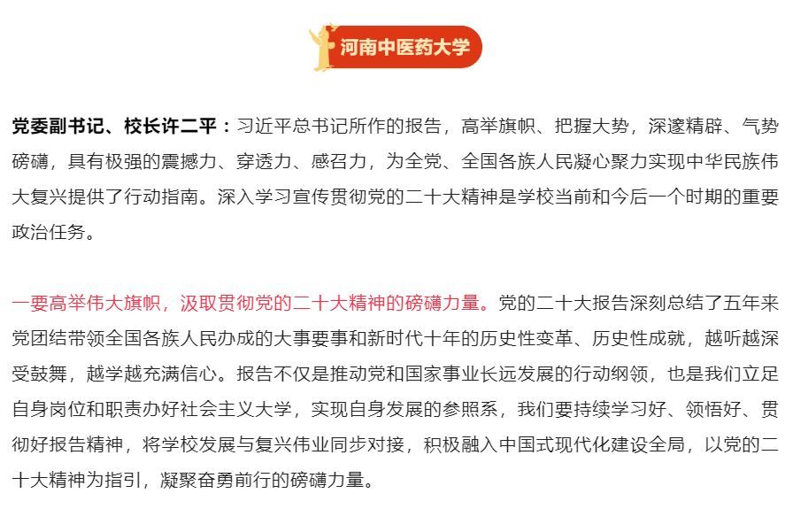 编者按:2022年10月16日-17日,省教育厅官方微信、河南高教对我校党委副书记、校长许二平热议党的二十大开幕会进行报道。现将河南高教部分文章刊发如下: