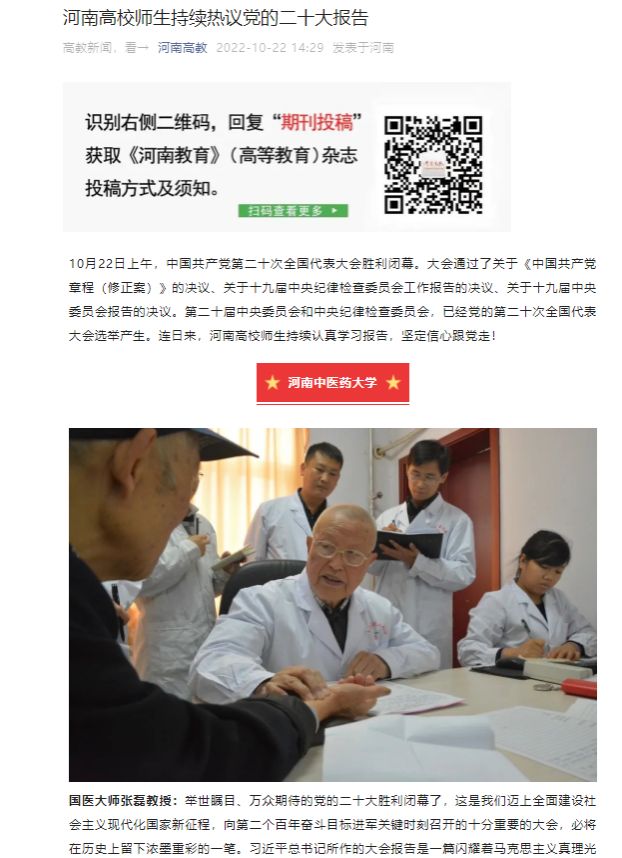 近日,河南教育宣传网强国号、河南高教刊载了我校师生热议党的二十大情况。