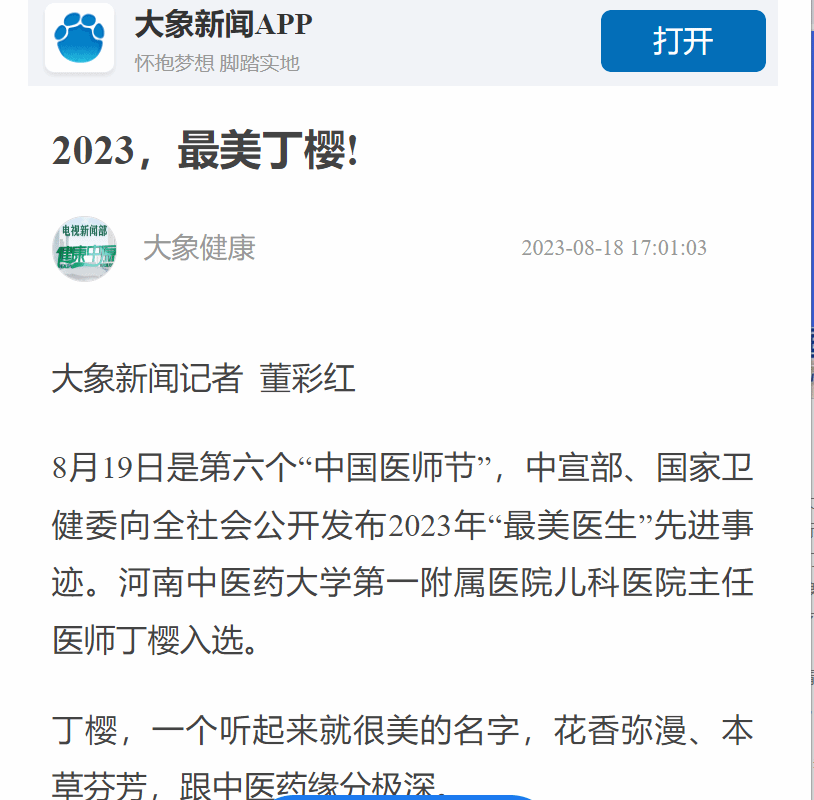 河南日报 河南高教丨2023“最美医生”丁樱:只要干得动,我就不会停