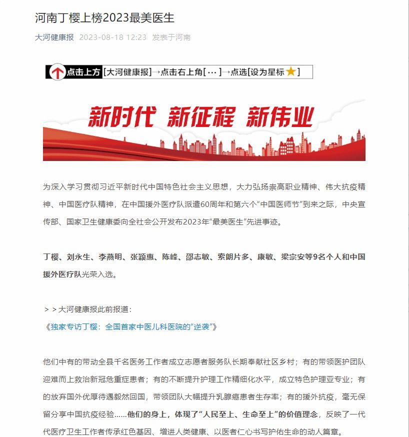 河南日报等丨我省一名个人入选2023年“最美医生”