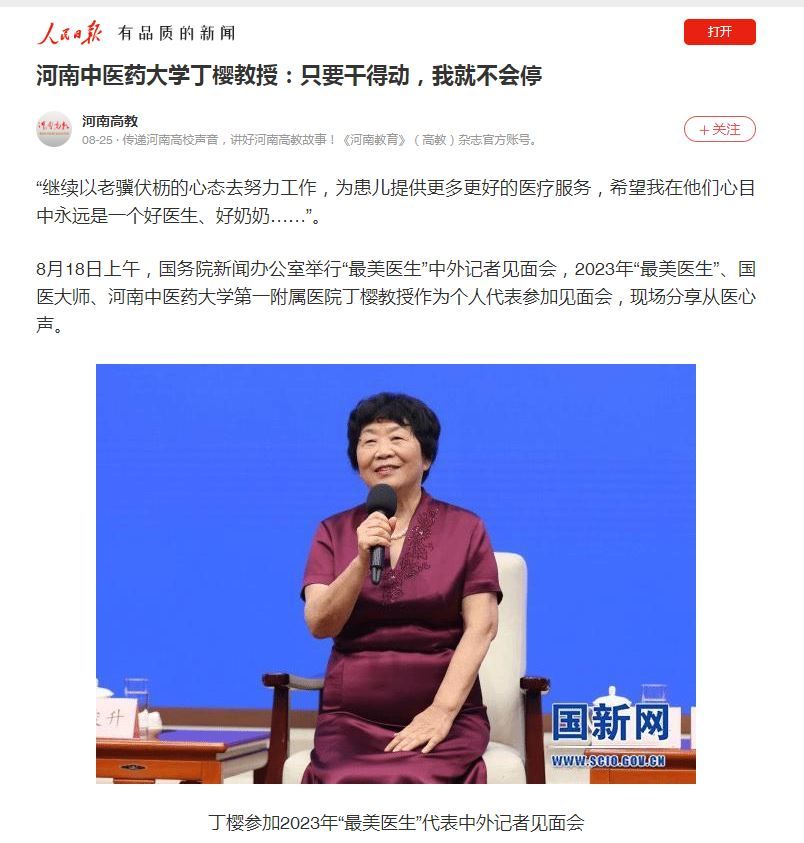 河南日报 河南高教丨2023“最美医生”丁樱:只要干得动,我就不会停