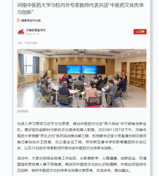 光明网、学习强国丨灵兰之约 与校内外专家教师代表共话“中医药文化传承与创新”