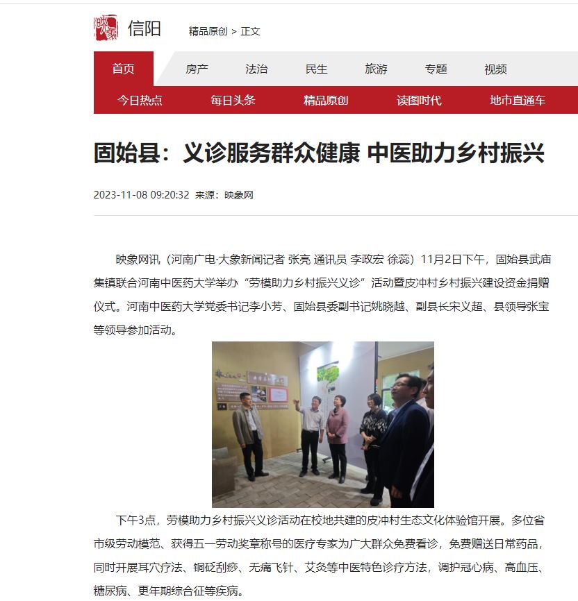 映象网等丨固始县:义诊服务群众健康 中医助力乡村振兴