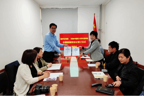 之后,庞亚宾和惠济区残联理事长邢海青代表双方签署了联合开展志愿服务活动及社会实践基地的合作协议。