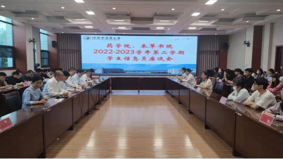 本网讯(文/图 刘庆普)为了进一步做好调查研究工作,深入了解学生学习生活情况,提升育人质量,2023年5月30日,药学院联合本草书院在图书馆第二报告厅召开2022-2023学年第二学期学生信息员座谈会。药学院党委书记杨昕,院长陈随清,副院长董诚明、纪宝玉,本草书院副书记、副院长刘雅琳,副院长邢瑶,药学院教研中心、研究中心、教学实验中心、教学办、科研办等科室主任及各班级学生信息员代表50余人参加座谈会。座谈会由纪宝玉主持。