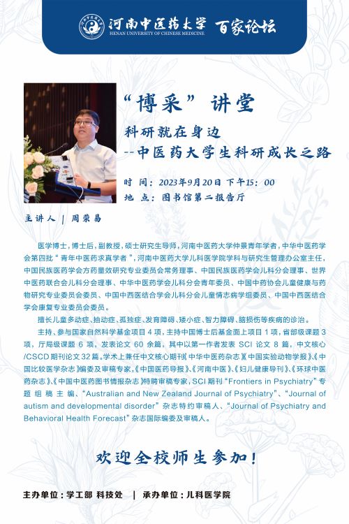 “博采”讲堂 科研就在身边——中医药大学生科研成长之路