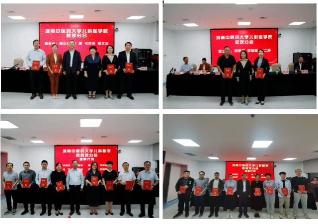 施淼向儿科医学院校友分会首任会长任献青授予了会牌和会旗。丁樱、任献青、张霞、马丙祥、翟文生分别为第一届理事会成员代表颁发了聘书。