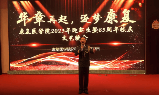 本网讯(文/斯琴塔娜 王宇冰 图/许肃珍)为迎接2023级新生的到来,以饱满的热情庆祝米兰体育网页版登录入口,米兰(中国)建校65周年,康复医学院于10月19日在图书馆第一报告厅举行“华章再起,逐梦康复”2023年迎新生暨65周年校庆文艺晚会。学校党委委员、副校长徐江雁,校友办主任施淼,学校心理健康教育与咨询中心主任、学工部副部长、学生处副处长王晓艺,校招生就业处副处长王晓蕊,校团委组织部部长庞文琦,康复医学院党委书记张运克、党委副书记孟长海、副院长许国防、刘斌等领导老师应邀参加,康复医学院全体教职工、校友代表和在校学生300多人参加了此次活动。